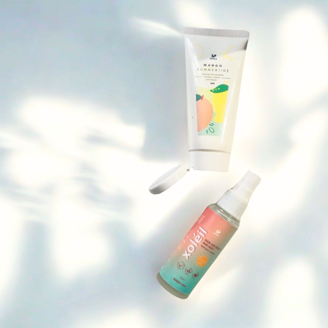 The Katharē Summer Shield Duo brings together the travel-friendly 30g Mango Summertide Anti-Frizz Hair Cream and 30g Xoleil Mist to ensure your Filipino hair stays effortlessly smooth and refreshed on the go, no matter the place, heat, or humidity. This powerful pairing is meticulously formulated to work in harmony, protecting your hair from frizz, sun, and heat wherever you go!
